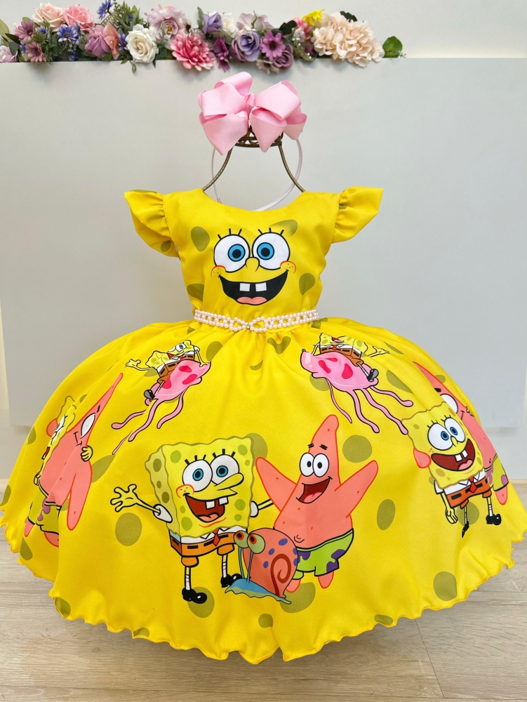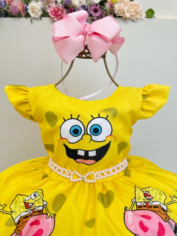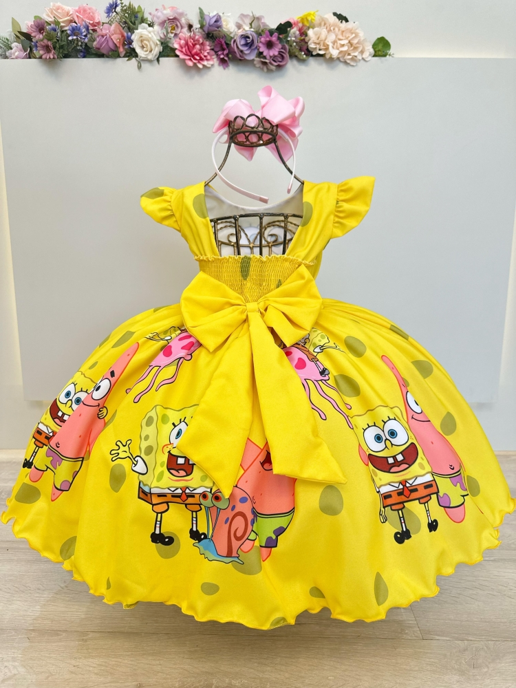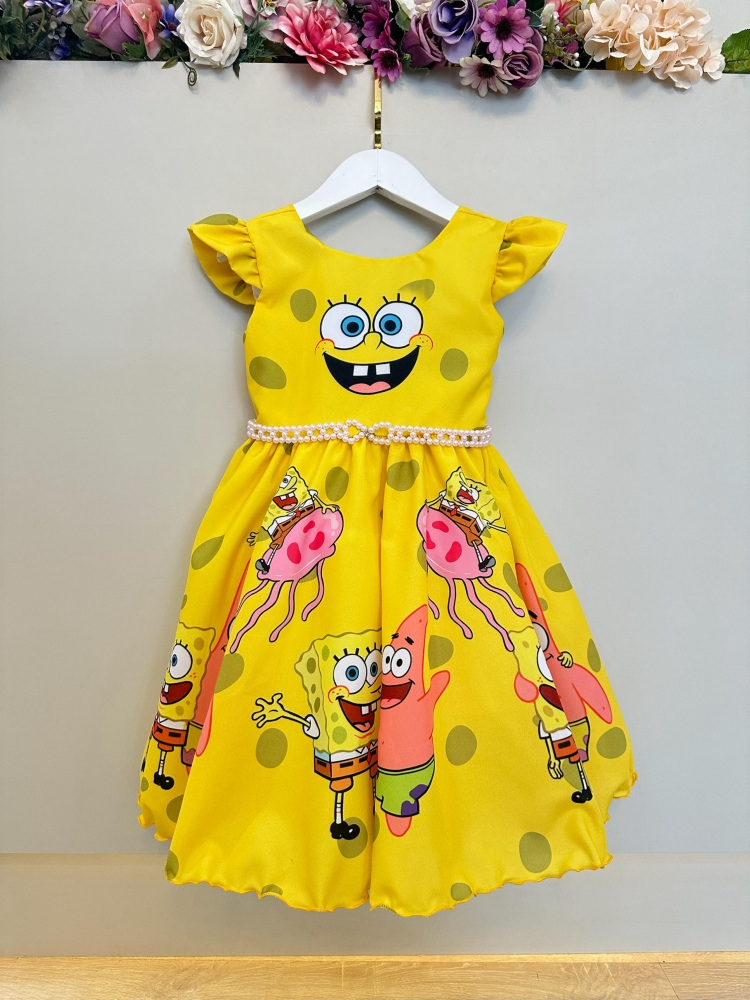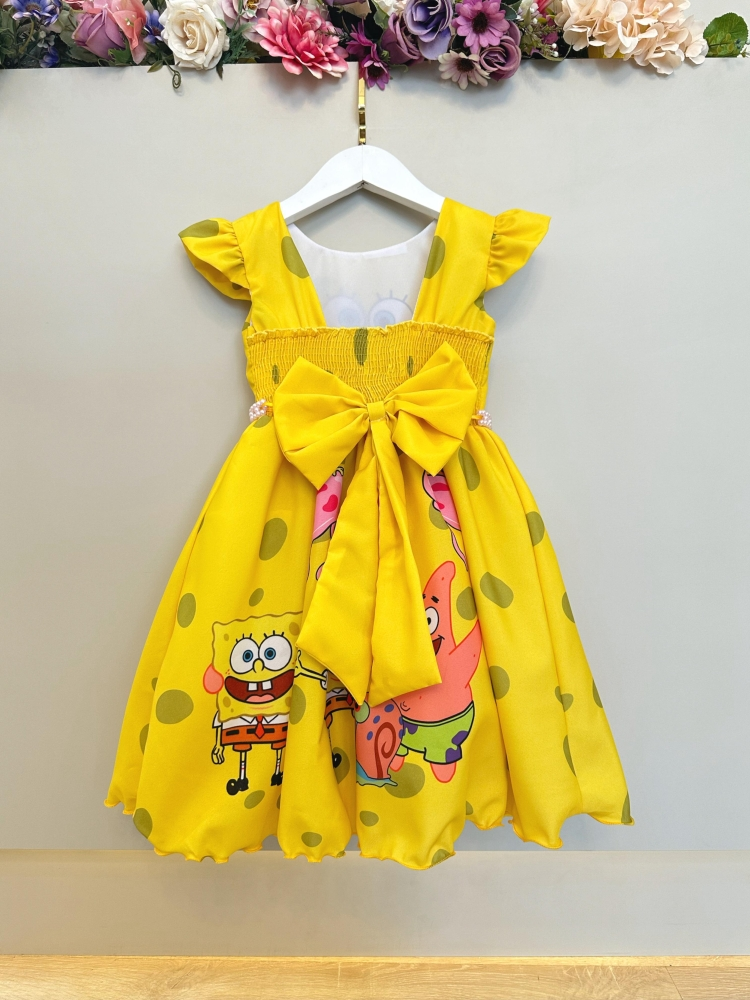 Vestido Infantil Amarelo Turma do Bob Esponja Festas