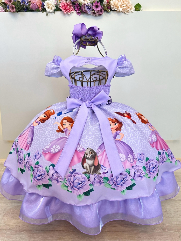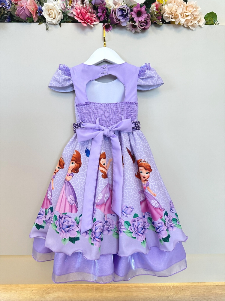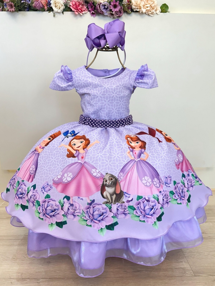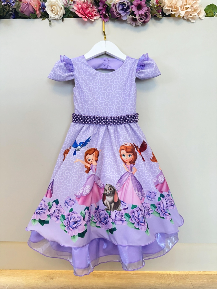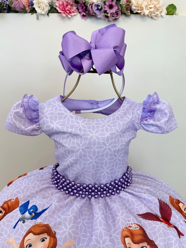 Vestido Infantil Princesa Sofia Lilás Festas C/ Pérolas