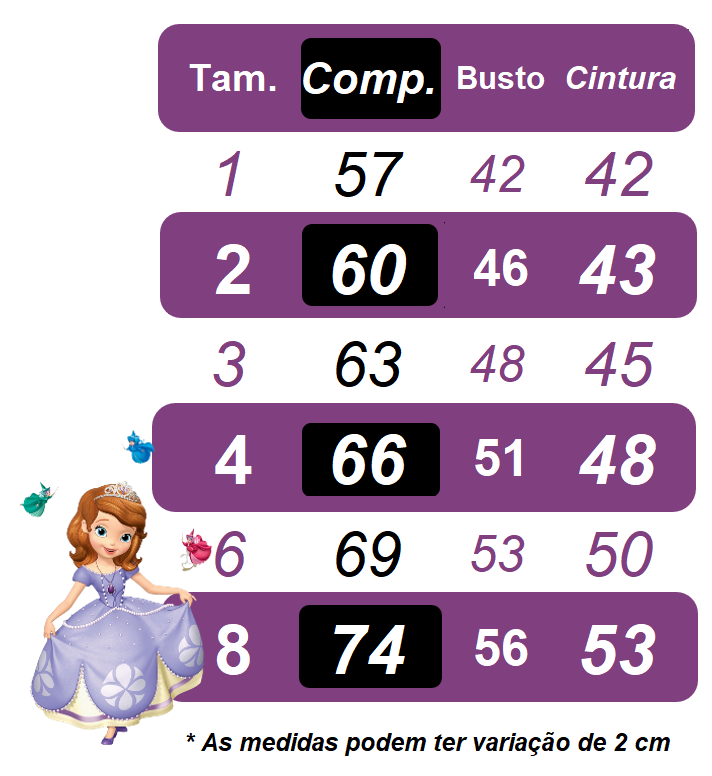 * Não é possível customizar as medidas, pois são padrão e a pronta entrega;