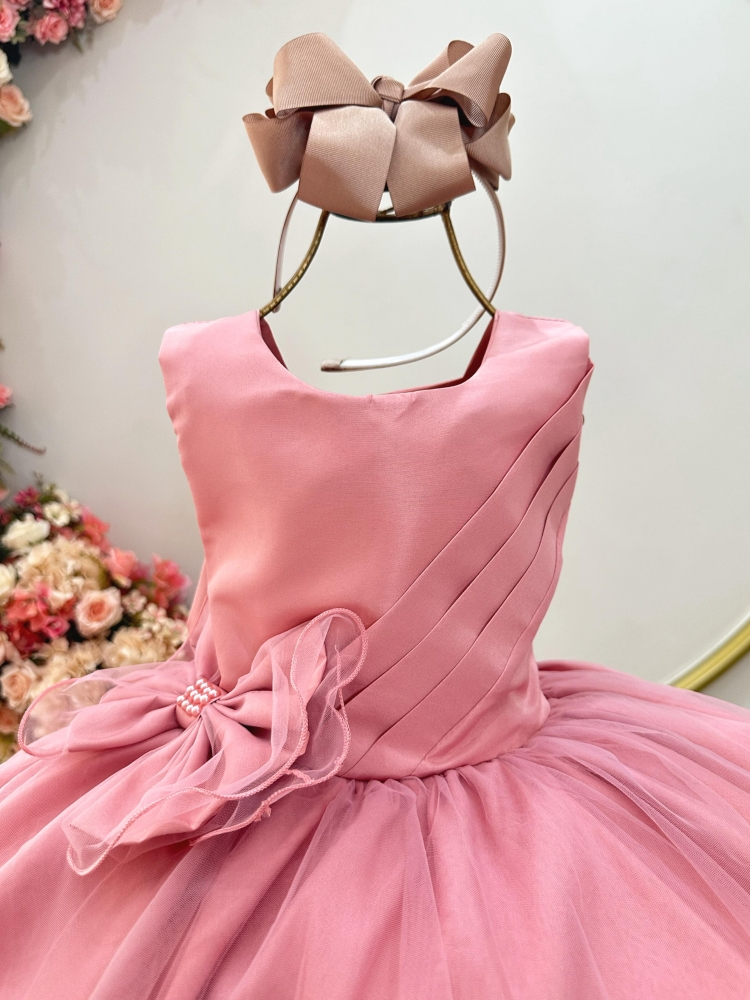 Vestido Infantil Rose Busto Drapeado Aplique Laço Damas