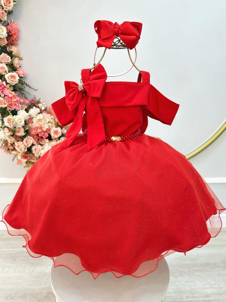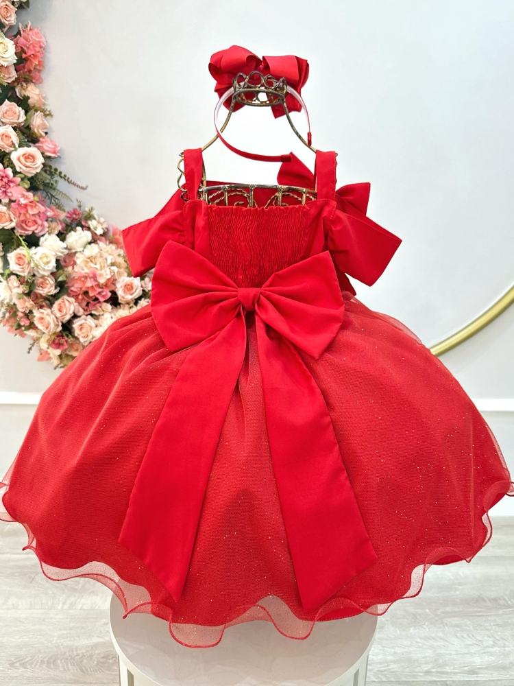 Vestido Infantil Vermelho Busto Com Nervura Damas Festas